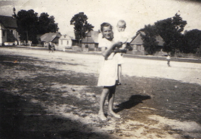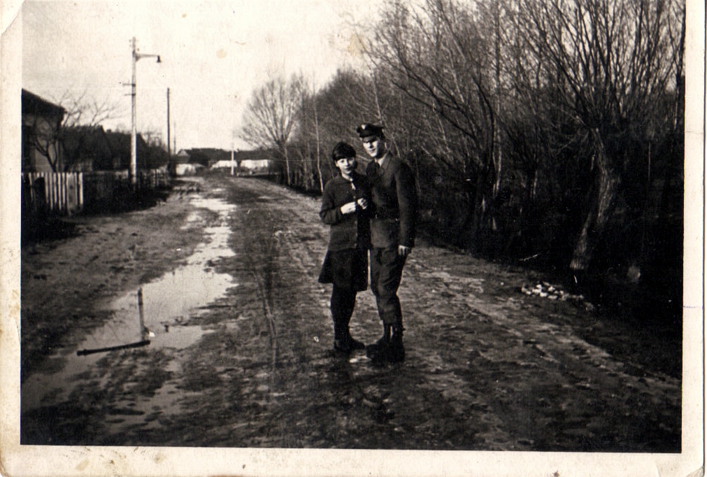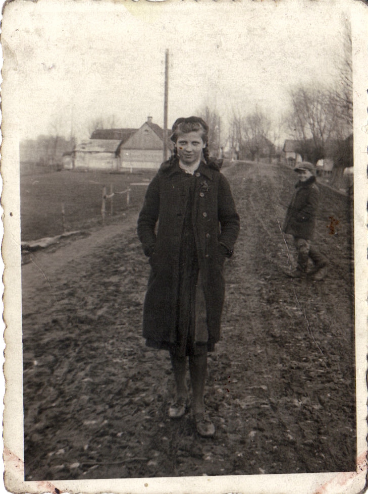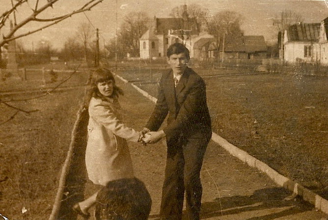 - Franciszek Siek z córką Teresą na progu swojego domu