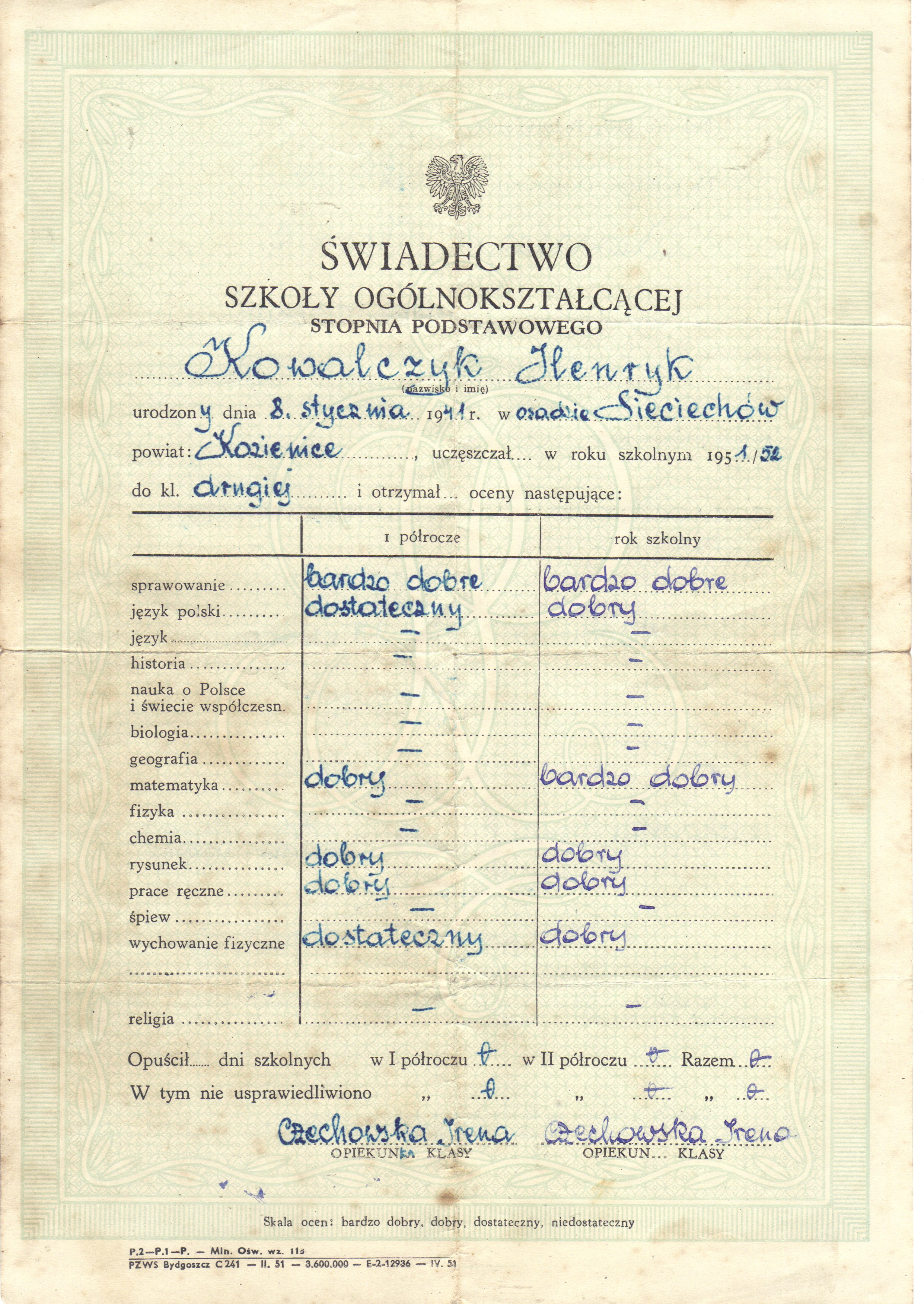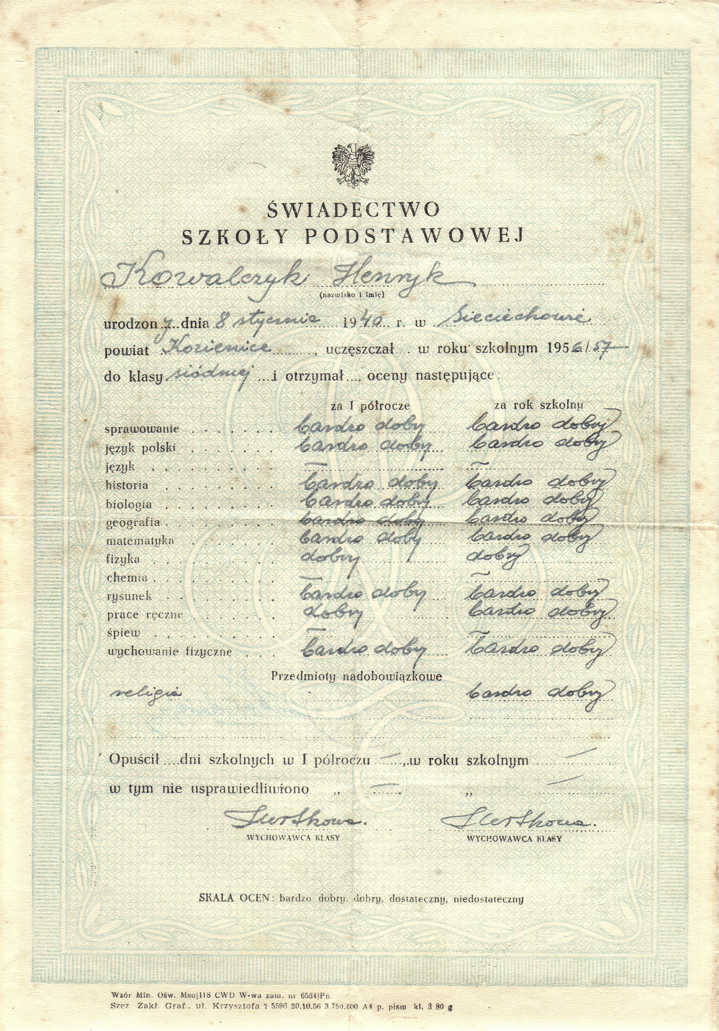 - Henryk Kowalczyk świadectwo Szkoła Podstawowa