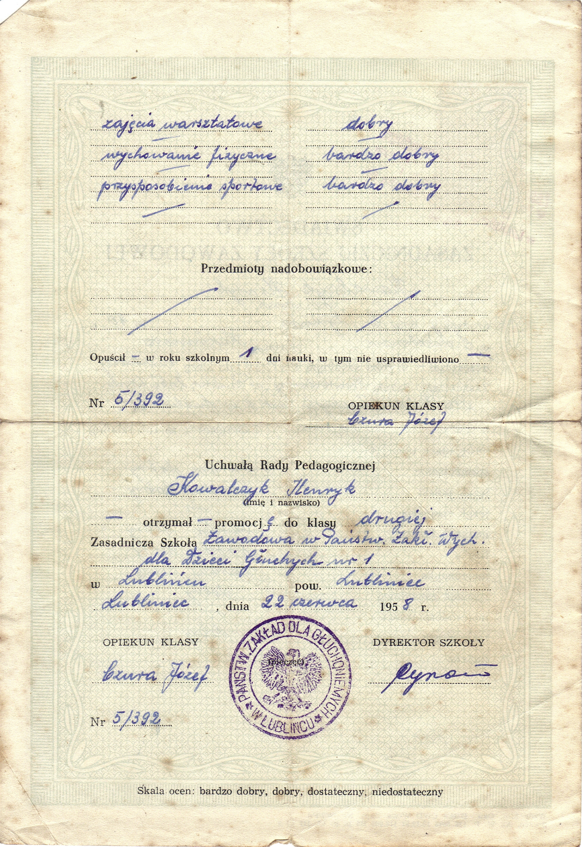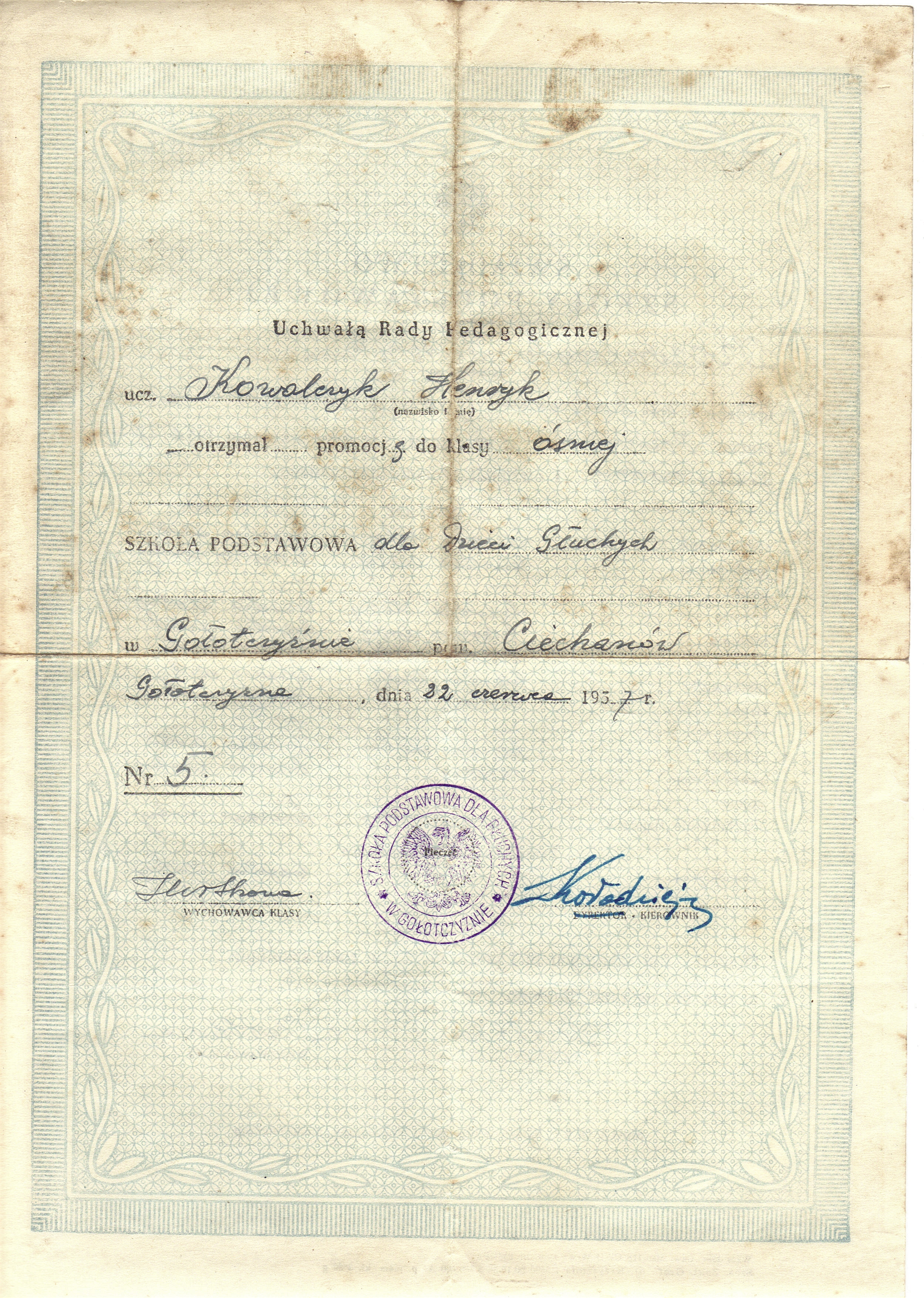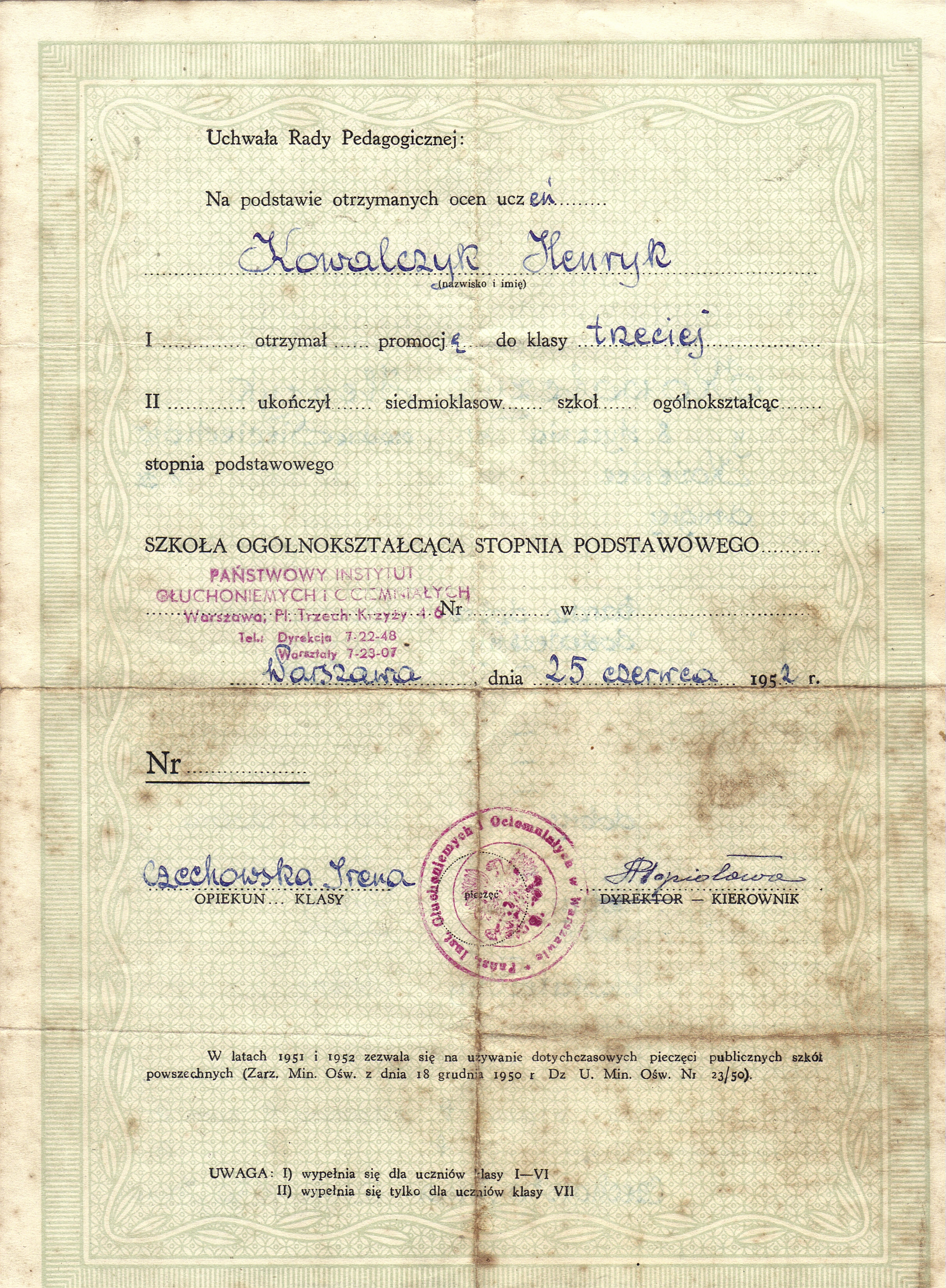 - Henryk Kowalczyk świadectwo Szkoła Podstawowa verte