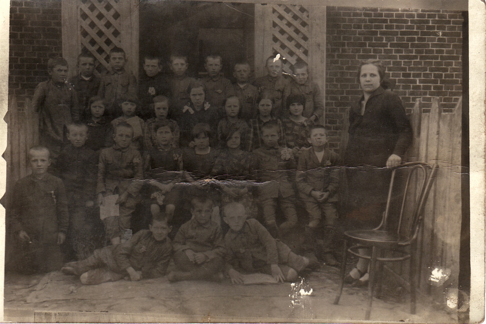 - III oddział szkoły w Sieciechowie 1927r. przed starą szkołą