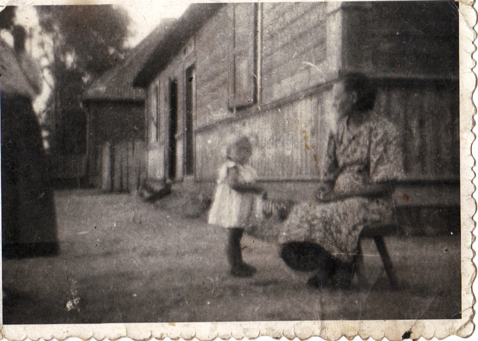 - Franciszek Siek z córką Teresą na progu swojego domu