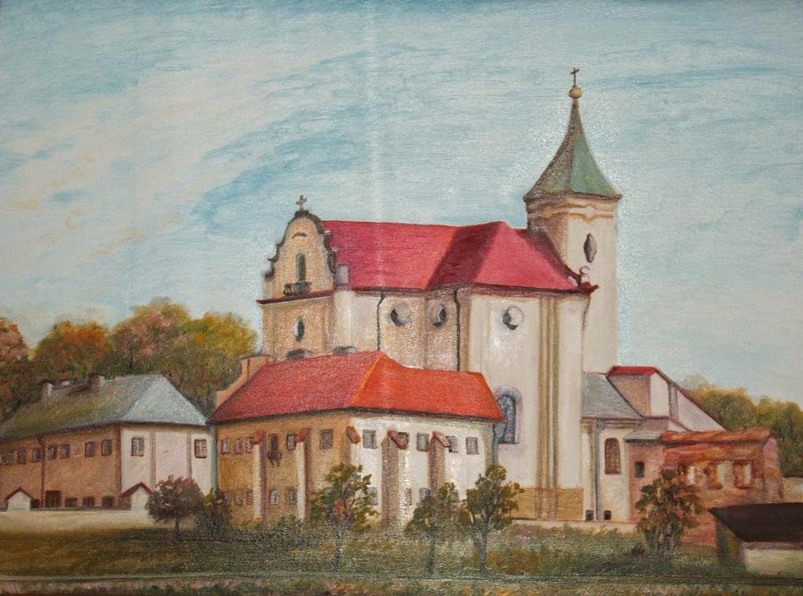 Kościół jest murowany i został wzniesiony za opatów Józefa Kurdwanowskiego (1739-1748) i Wawrzyńca Bułharewicza (1748-1767). Wewnątrz ozdobiony był polichromią