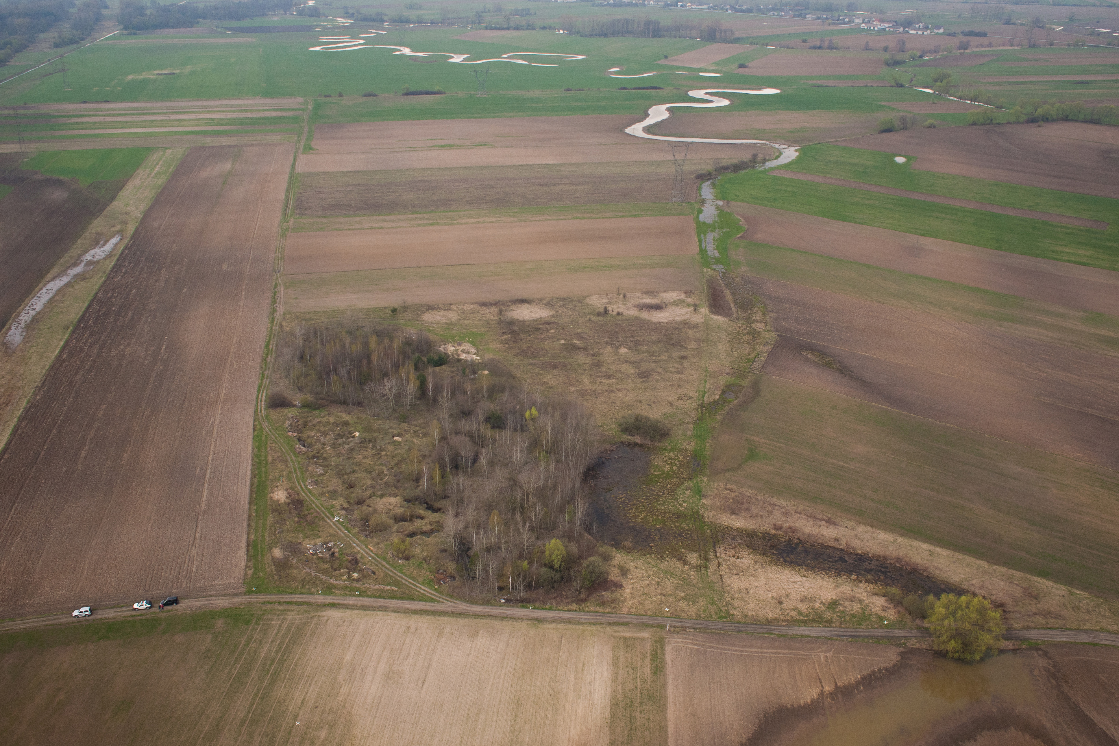 - U dołu Wójtowa Góra oraz meandry starego koryta Wisły w dali Kopiec Tatarski